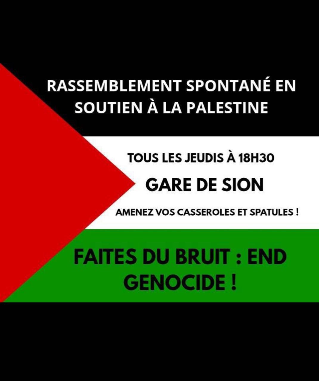 - weekly: gare de sion, tous les jeudis à 18:30, faites du bruit!