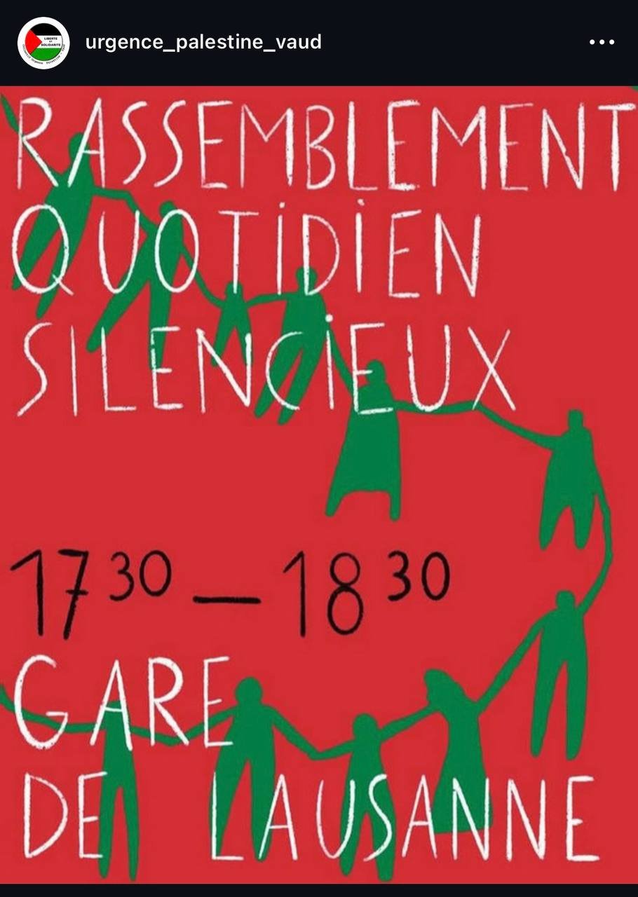 - daily: gare de lausanne, 17:30 à 18:30, rassemblement quotidien silencieux